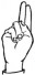 На ћирилици написано МИРЈАНА ДОРОНТИЋ састоји се из 15 слова [?]. Исписано ћириличном једноручном азбуком за глувонеме: